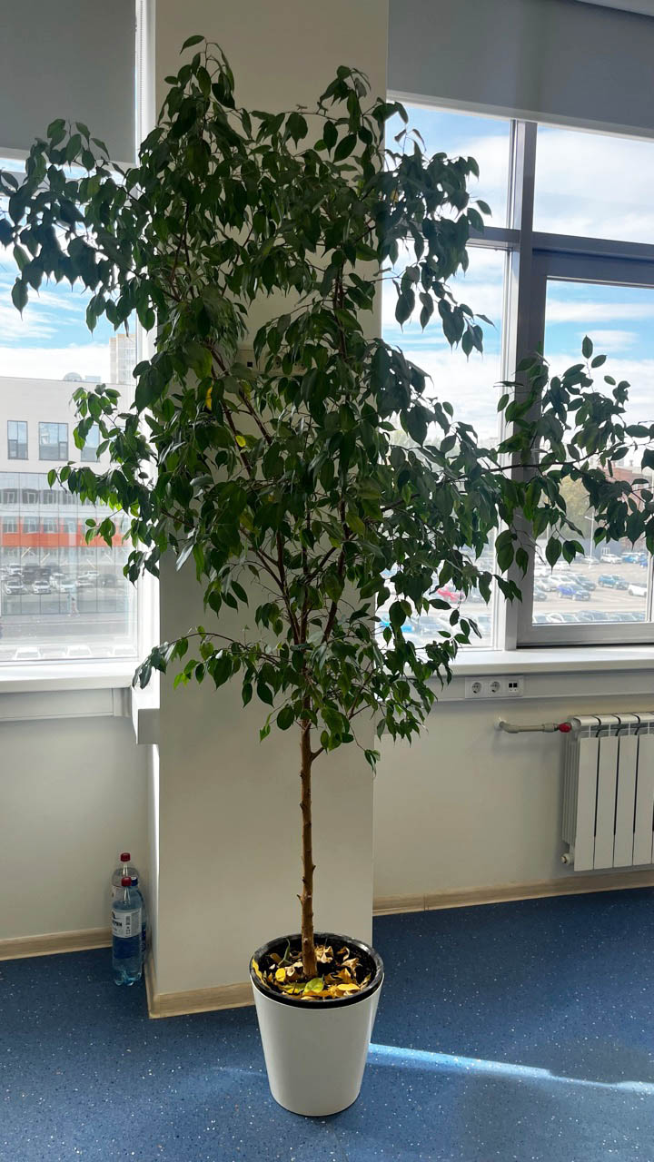 Фикус Бенджамина — одно из моих любимых растений. Не требует особого ухода, но очень красив. Я часто добавляю его в композиции, чтобы создать яркий акцент.
