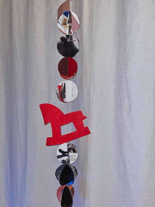 Вторая гирлянда делается почти так же: круги большего размера я склеивала друг с другом, чтобы получился фонарик. У меня ушло 12 страниц журнала — один фонарик состоит из пяти кружков.