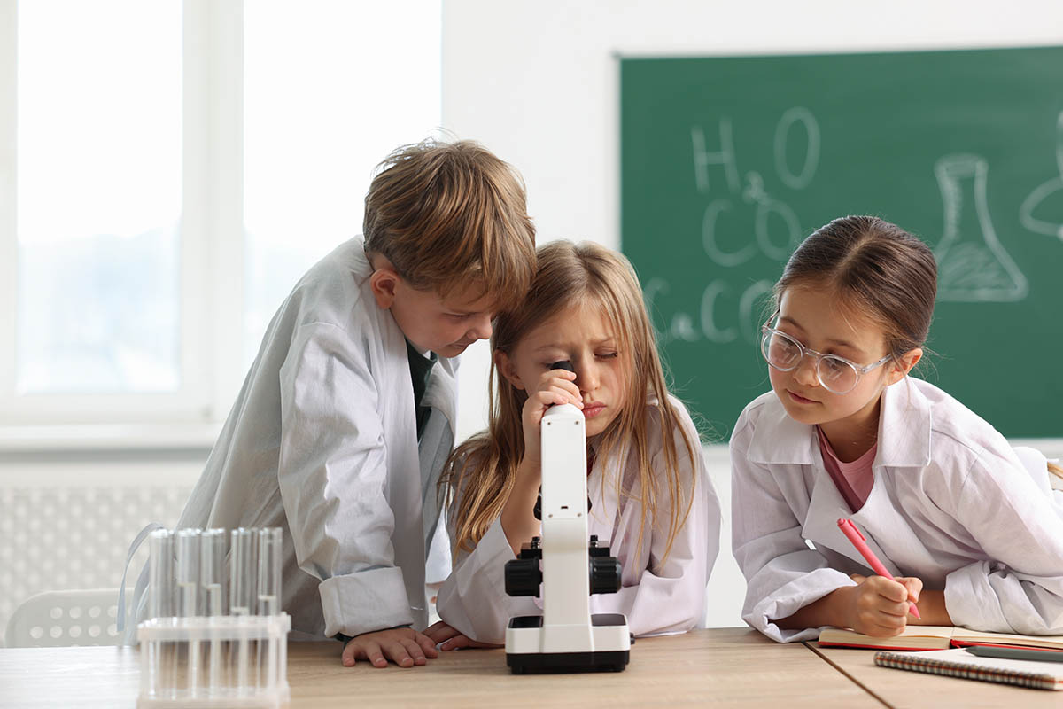 Даже простые микроскопы позволят рассмотреть детали листьев, тканей, капель воды или разных материалов. Докупите наборы , и ребенок сможет изучать более мелкие структуры — бактерии, клетки, части организмов.