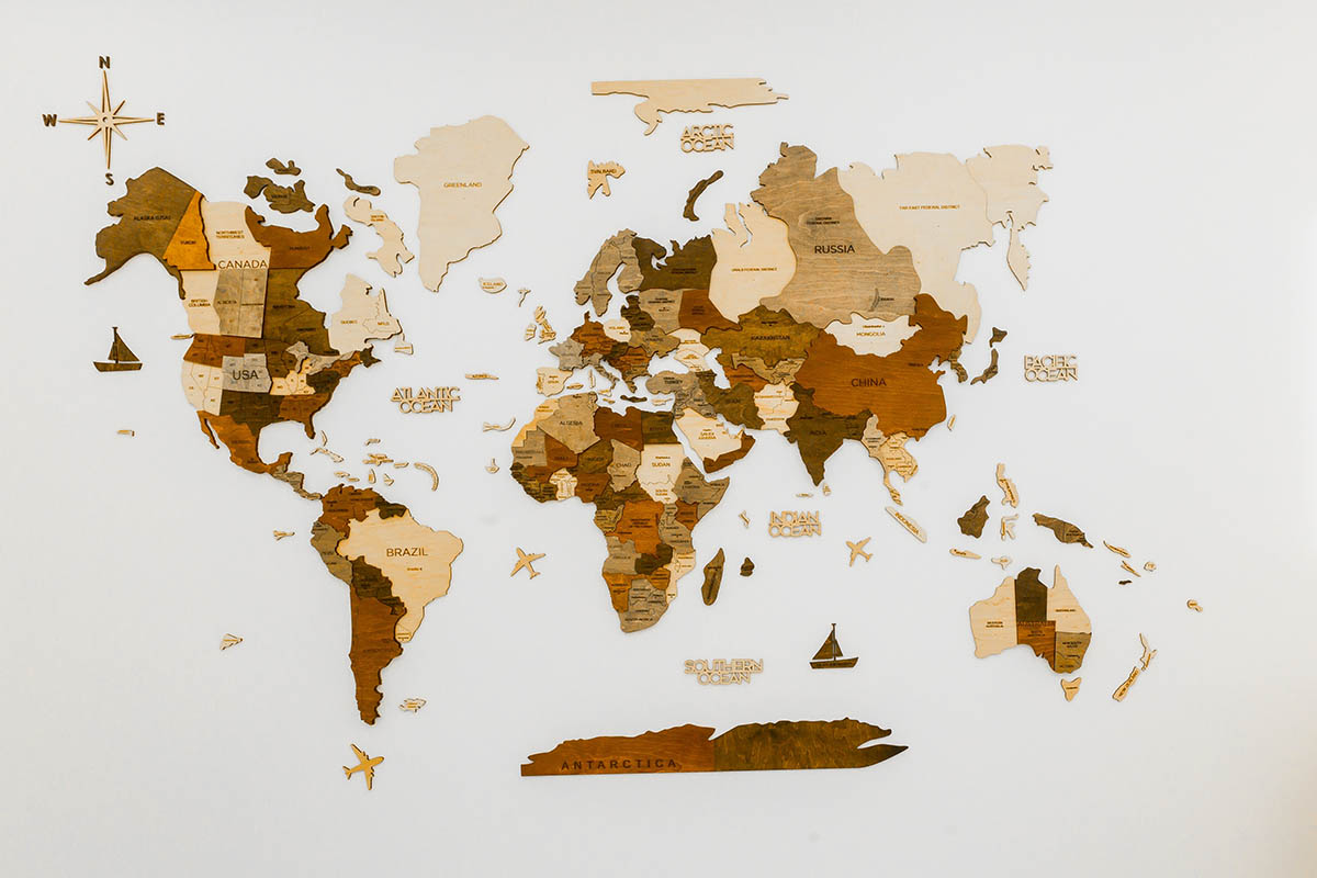 Интерактивная настенная карта — наглядное пособие, которое познакомит ребенка с разными странами. Они бывают разными: от самых простых плакатов до более дорогих — деревянных или с озвучкой.