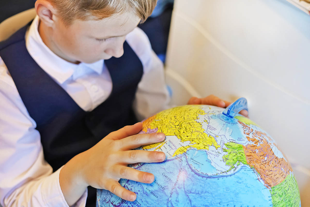 Глобус поможет представить расположение стран, материков и океанов. Когда можно покрутить и детальнее рассмотреть политическую и физическую карты мира, легче запоминать информацию.
