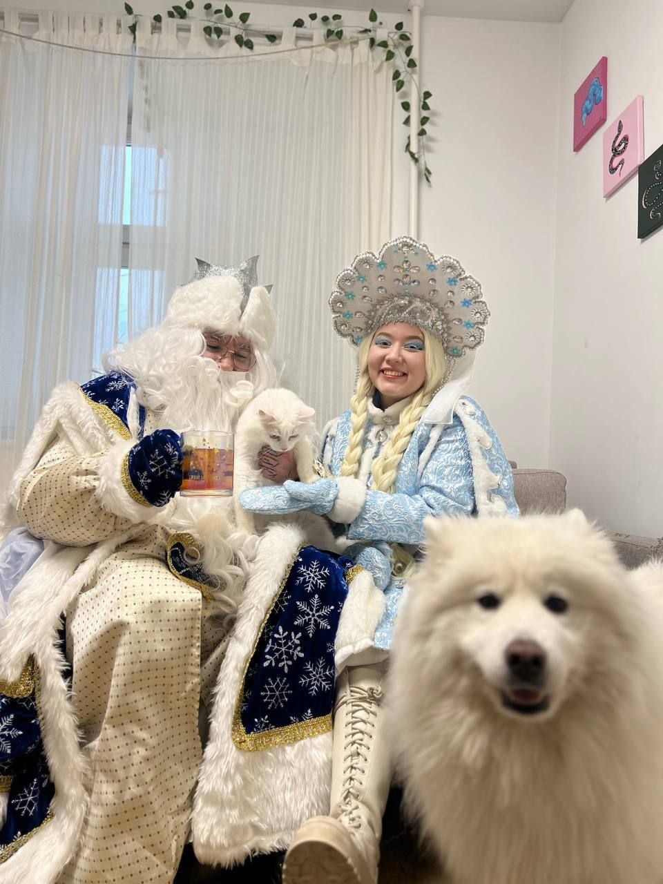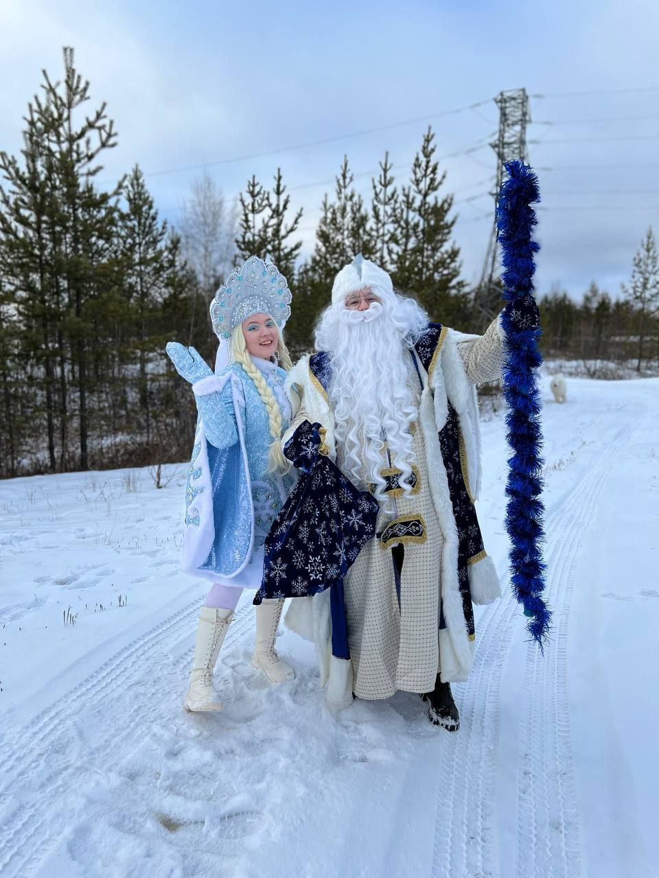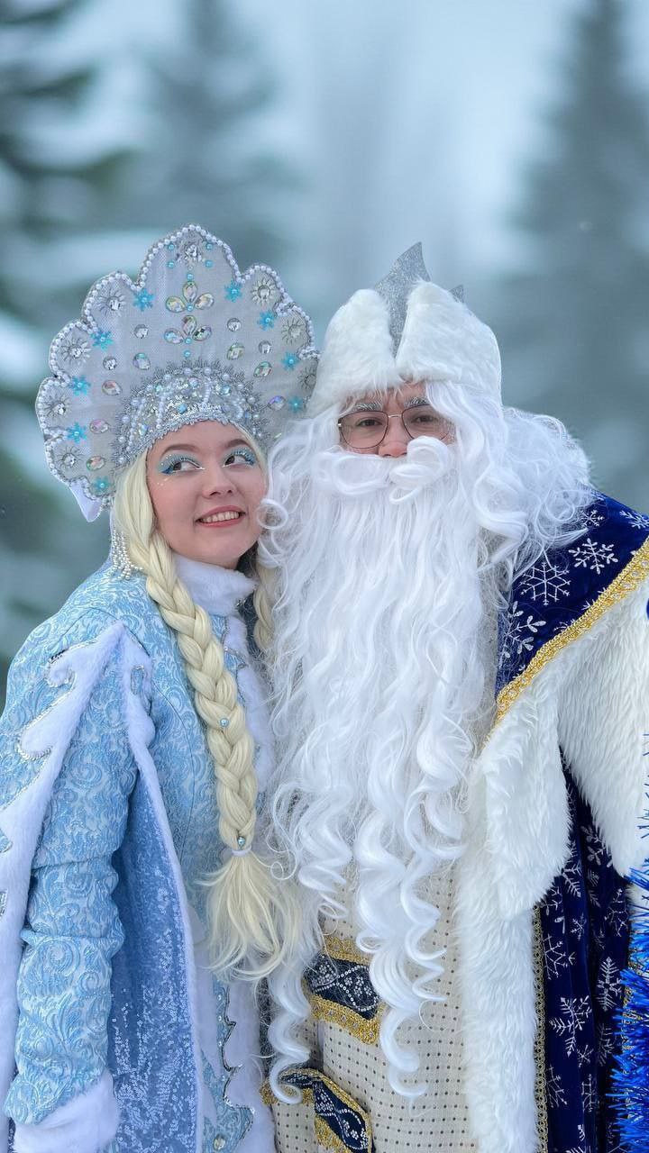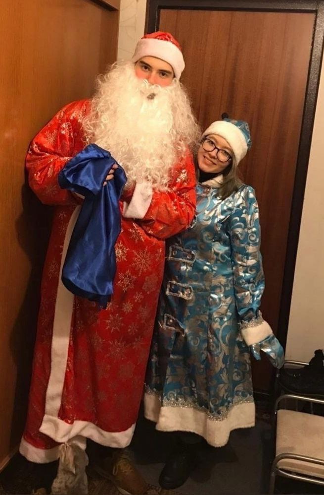 Мы начали с дешевых костюмов и почти без реквизита. Костюм Деда Мороза одолжили у родственников, наряд Снегурочки едва успели найти на Авито прямо перед выездом, 29 декабря. Посох мне помогла сделать мама из швабра и мишуры! Нехватку реквизита возместили фантазией: нашли игры, сценки, для которых не нужно было ничего покупать.