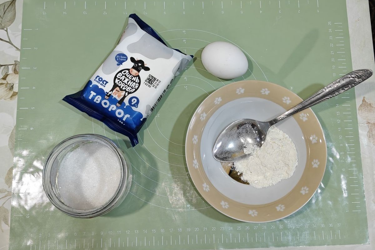 Примечание: я готовлю порцию сырников для сына из пачки творога весом 180 г. Но в первоначальном рецепте такое количество ингредиентов, в том числе один желток, указано для 400 г. Это кажется странным, но не будешь же делить сырое яйцо пополам. Получается все равно вкусно.