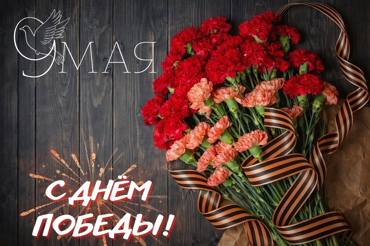 Цветы — символ памяти, уважения, благодарности. На открытках с Днем Победы — тюльпаны, сирень, красные гвоздики. Последние — самые популярные, так как ассоциируются с памятью о павших героях.