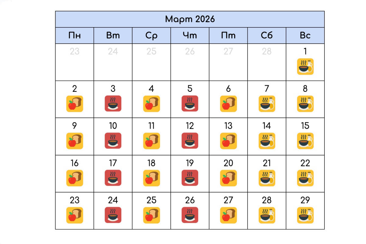 В дни духовного обновления следят не только за рационом, но и поведением. Протоиерей Игорь Фомин рассказывал, что суть — не в голодании, а в душевном труде. Откажитесь на время от дурных привычек, развлечений, осуждений и склок. Совершайте больше добрых дел.