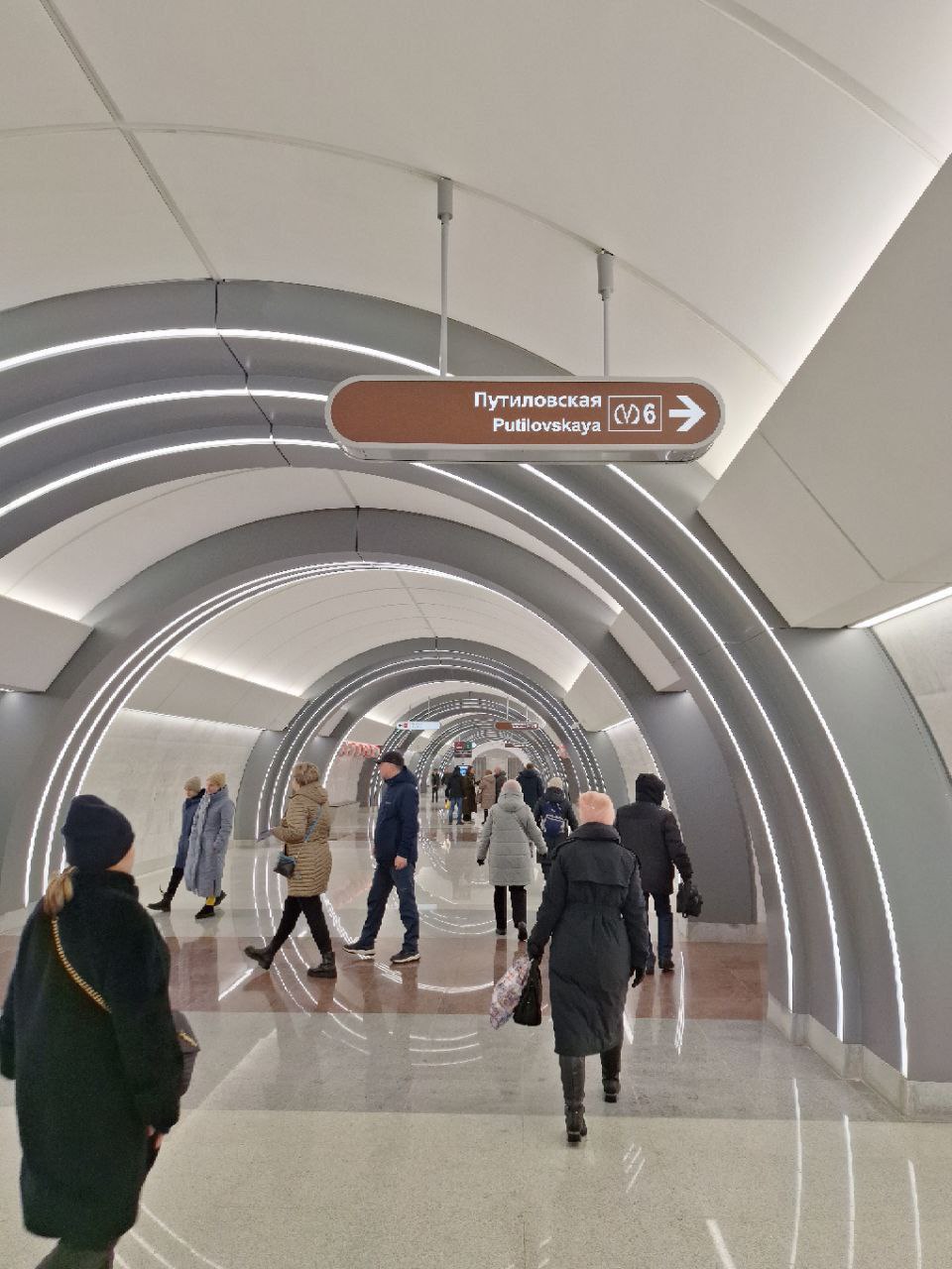 Пересадка на «Путиловскую» — через «Кировский завод» (и это первая пересадочная станция вне исторического центра города). Сейчас «Путиловская» — начало, оно же конец шестой ветки, но когда-нибудь в далекой перспективе линию протянут до Обводного канала (нынешнее название планируемой станции — «Каретная».