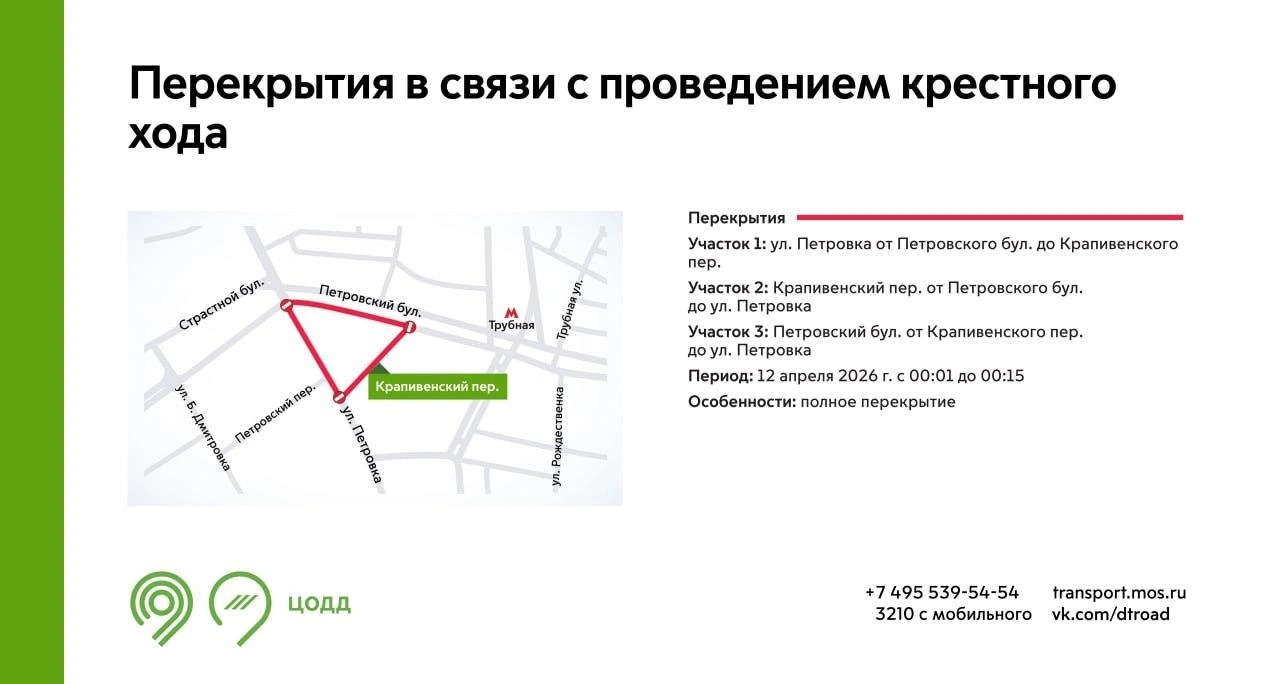 В ночь с 11 на 12 апреля 2026 года в центре Москвы введут временные ограничения движения. Причина — пасхальный крестный ход и праздничные богослужения. Столичный Дептранс опубликовал список улиц, где закроют проезд и запретят парковку.