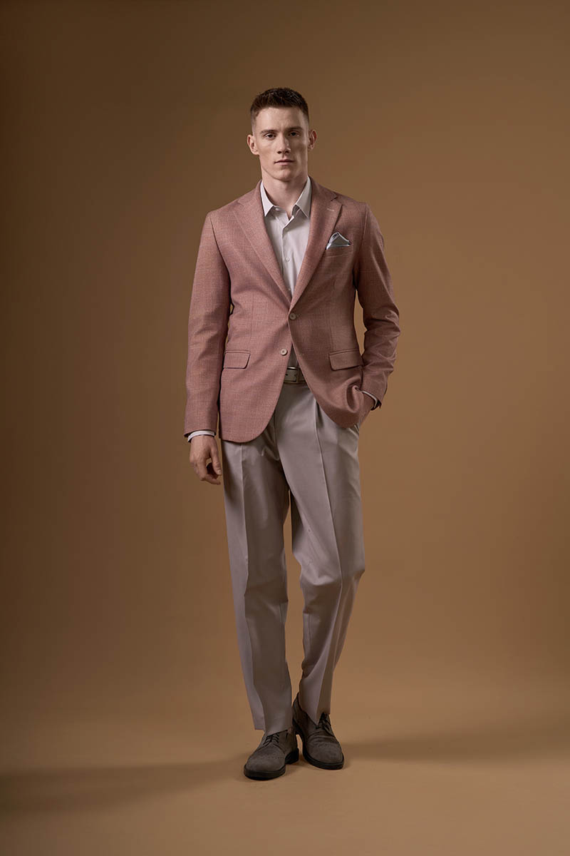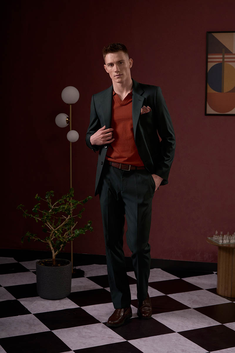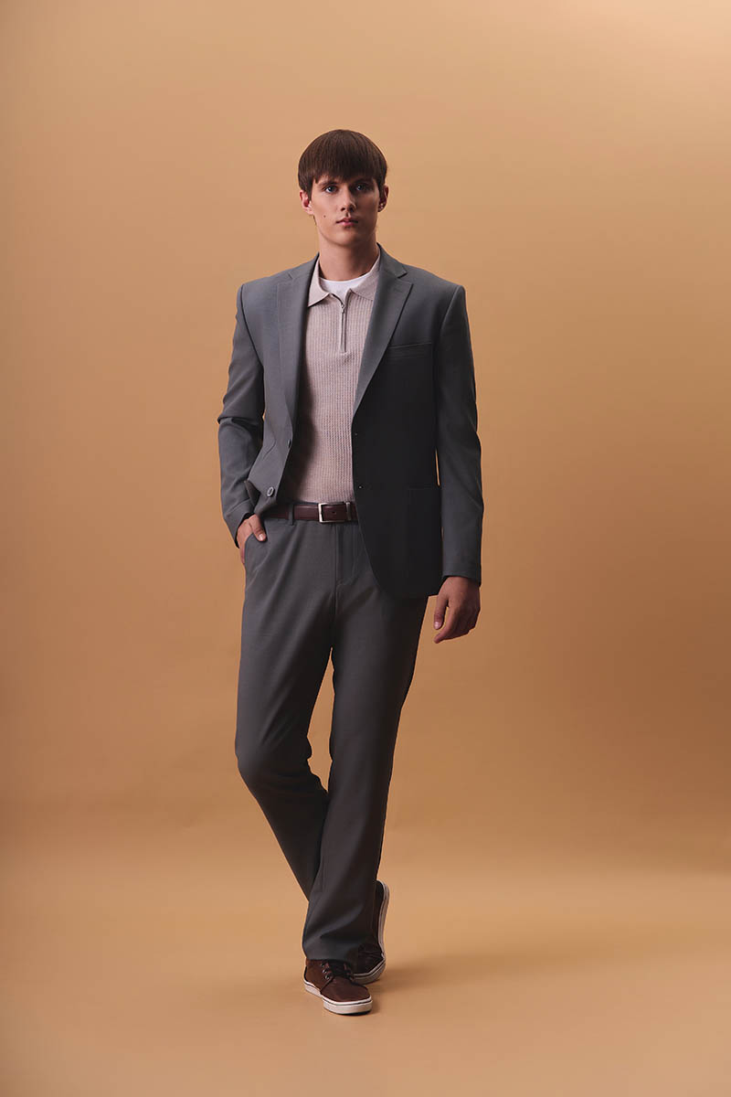 Вторым слоем выбирайте пиджак из плотной ткани, например шерсти. Если хотите отойти от классики — летний трикотажный пиджак, рубашку-поло из легкой ткани. Для контраста можно поиграть с цветами — например, надеть зеленое поло с нейтральными темными брюками.