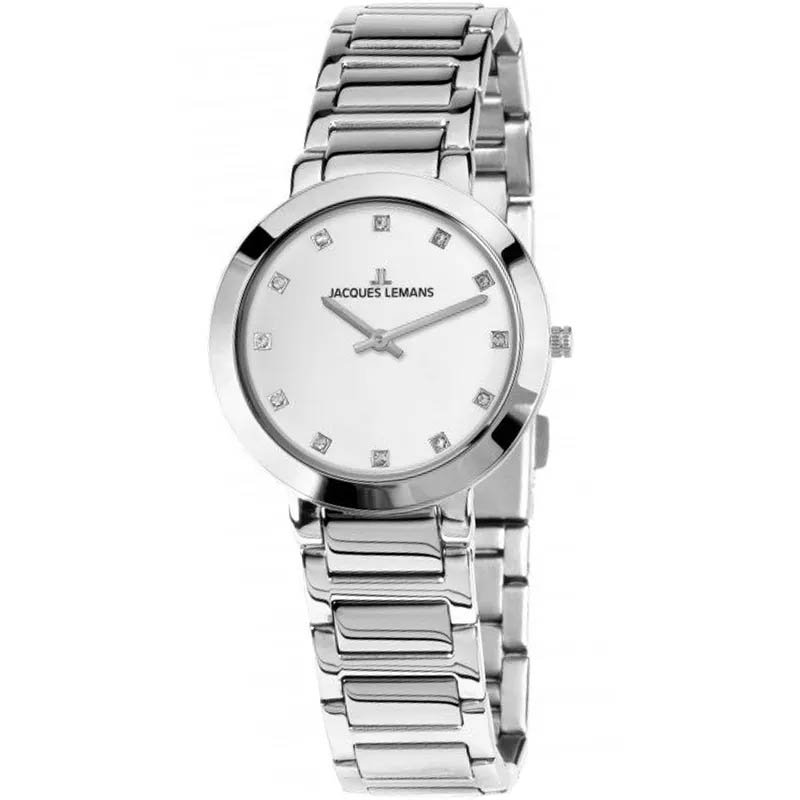 Jacques Lemans 1-1842M — классические часы со светлым циферблатом и стразами. Источник: sibtime.ru