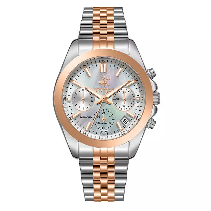 - Beverly Hills Polo Club BP3656C.520 — от 17 300 рублей. С нежным перламутровым циферблатом и элегантным двухцветным браслетом.