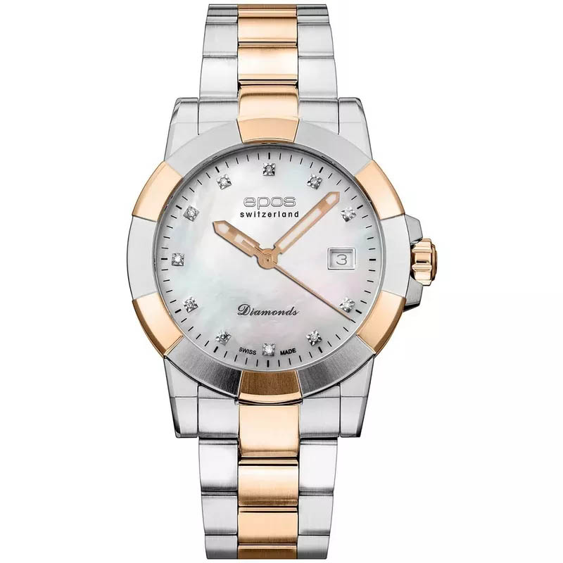- Epos 8001.700.32.80.42 — от 105 900 рублей. Хороший выбор в среднем ценовом сегменте: с золотистыми вставками и синтетическими бриллиантами.