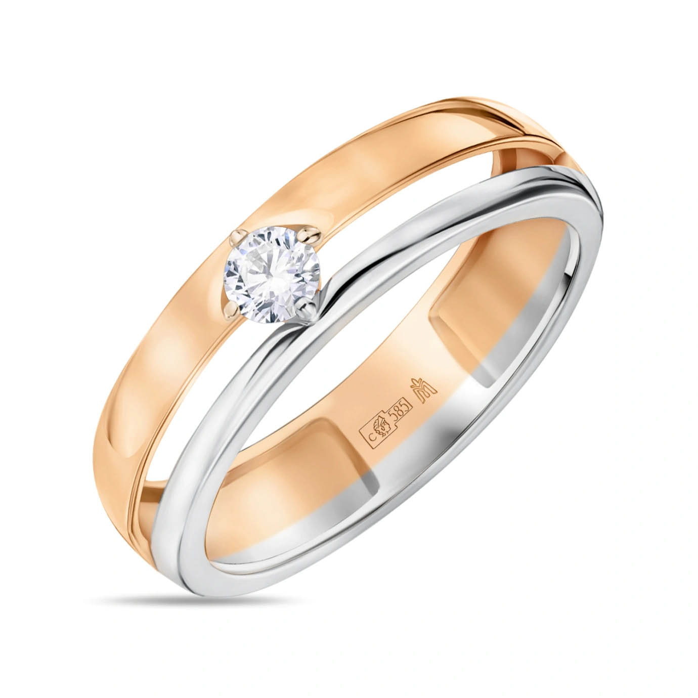 Стоимость сдвоенного кольца из белого и красного золота с искусственным бриллиантом 0,12 карат (размер 16) — 65 690 ₽