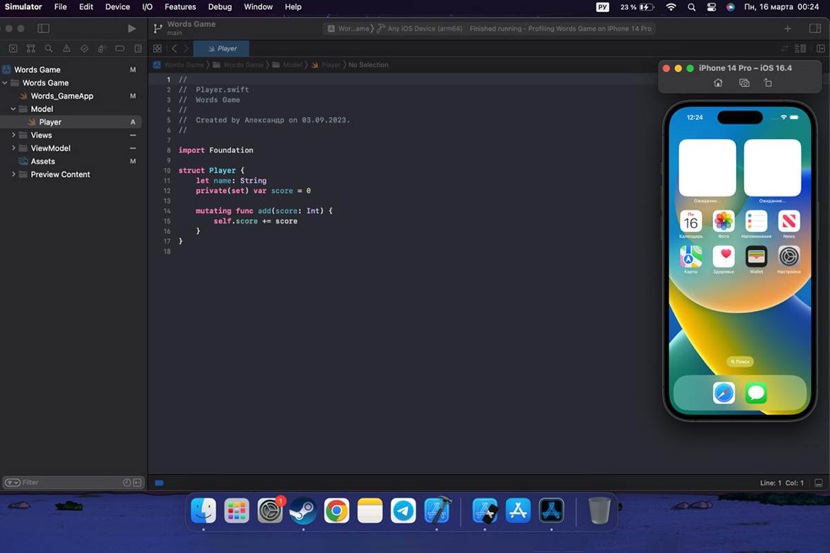 Активируйте Devices and Simulators, чтобы отобразить экран смартфона. Источник: Xcode на iOS