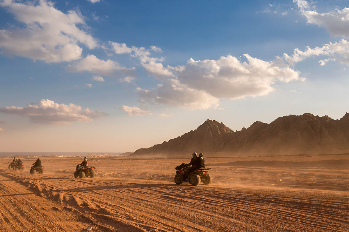 Не представляете путешествия без активного отдыха? Попробуйте сафари на квадроциклах по пустыне Синай или покатайтесь на джипах по Цветному каньону с необычными скалами, похожими на слоеный пирог.