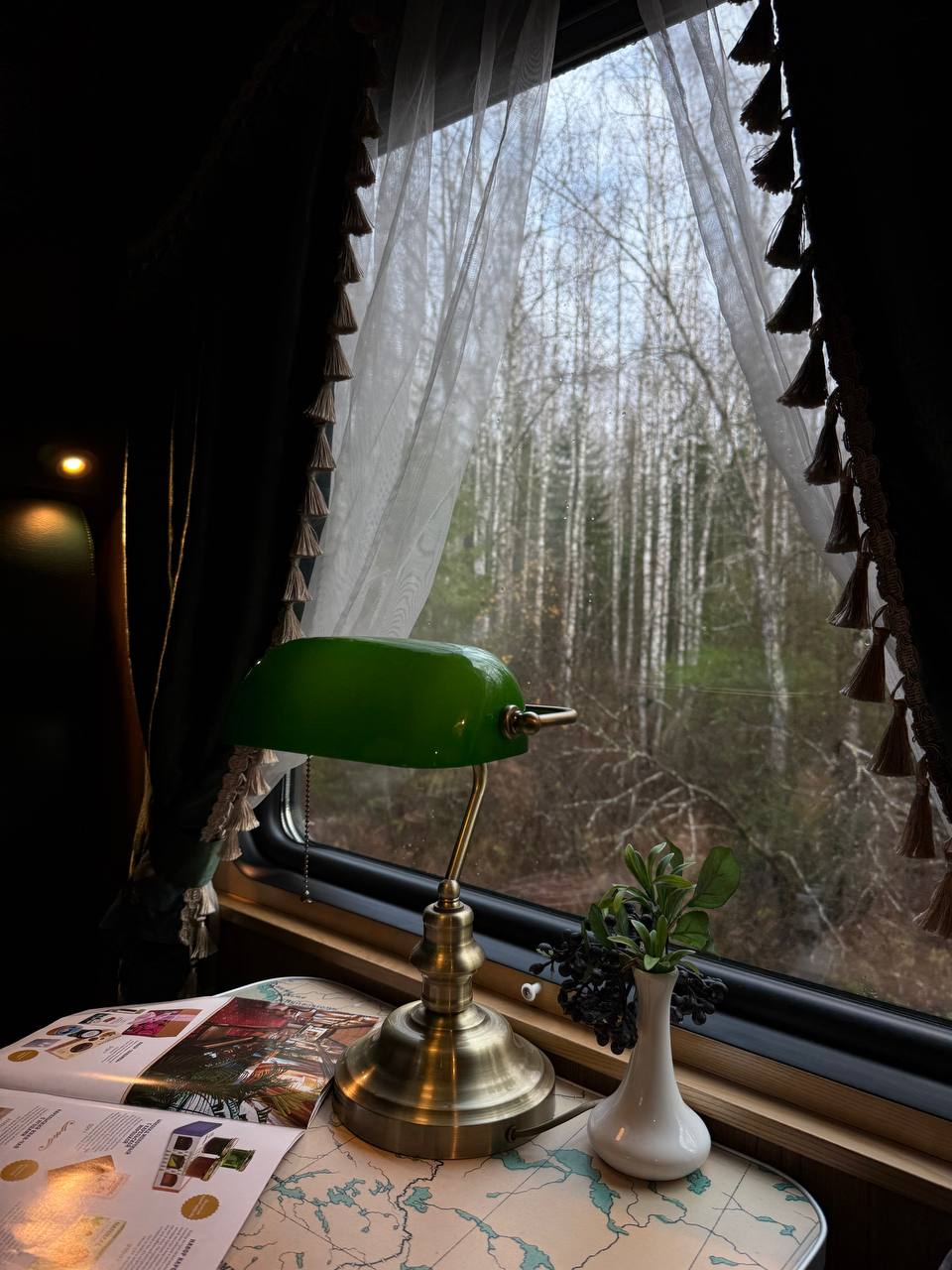 В поезде есть фотокупе в духе прошлого века, там все как 100 лет назад: старинные светильники, винтажная мебель. Специальная фотосистема сделает моментальный снимок на память. Чтобы попасть в фотокупе, обратитесь к проводнику или купите билет в терминале вагона.